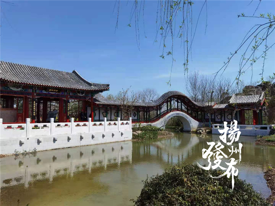 “这是圆明园内的‘规月桥’,我们按照1:1的比例,让它呈现给世园会。” 董道宏告诉记者,这座桥原为圆明园“廓然大公”景区内的石桥,是一座造型美观的石拱廊桥,桥拱较高,在古代以便皇帝御舟通行。半圆形的桥洞倒映在水面上,宛如一轮满月,与拱券上的乾隆御题“规月桥”三字相得益彰。如今,扬州市民和游客可以在世园会一睹其芳容。