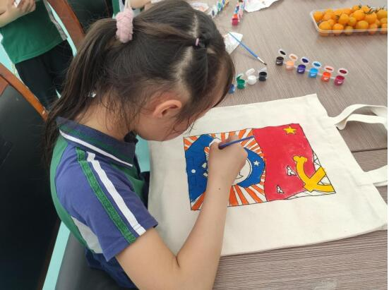 汤浜村漕湖幼儿园组织大班的小朋友们来到农业基地倪家湾水之田参观。进入基地,孩子们看见桌上放着各种各样的环保袋、五彩斑斓的颜料和画笔,争先恐后地坐好到座位上,只等着老师一声令下,便开始自己的环保袋创作。他们有的屏气凝神、细心填涂,有的眉头微皱、潜心创作,不一会儿,一只只精美别致的环保帆布袋就在小朋友们的笔下诞生了。