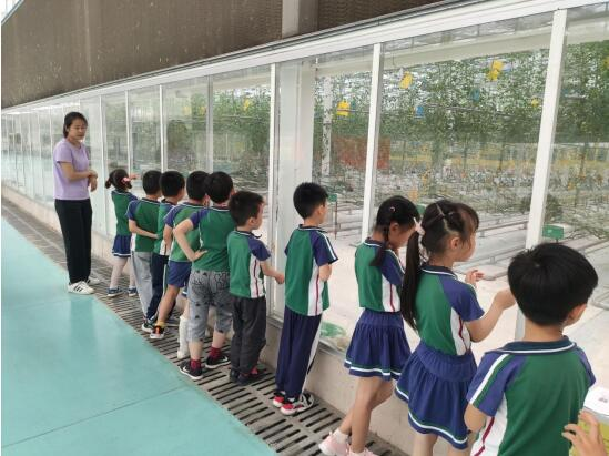 接着,倪家湾水之田的工作人员带着小朋友们参观了生产基地,向他们介绍了番茄、黄瓜、西瓜的生长过程,并邀请孩子们品尝了基地中生产的西瓜。面对可口的瓜果,小朋友们乐坏了,纷纷叫着“好甜”、“真好玩”。