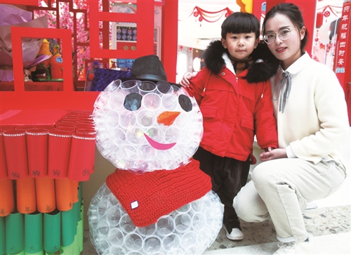 张柴郡小朋友和爸爸妈妈一起做的雪人灯体型很大,用张柴郡妈妈的话说:“这个雪人灯个头儿高大,寓意红红火火。”这是他们一家用了两个多小时完成的。