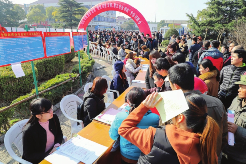 常熟海虞,春季招聘会促进就业。刘文忠摄