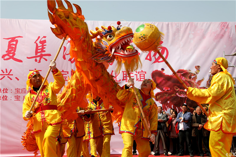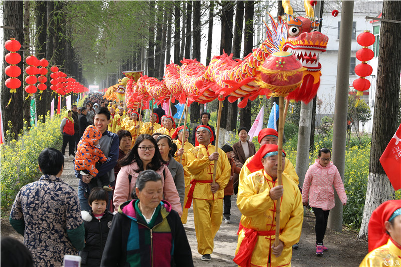 4月6日,宝应县夏集镇桃花园里,10支舞龙队激情上演“舞动夏集 激情飞扬”,吸引了众多市民和游客前来快乐享受民俗文化大餐。