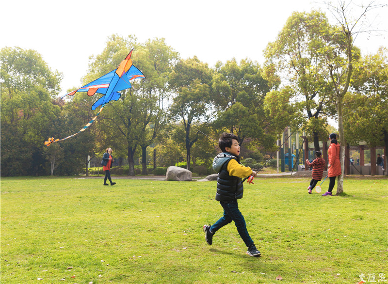 4月6日,天空放晴,一群天真可爱的孩子在海门市东洲公园里放飞风筝,拥抱春天,尽享假日阳光。