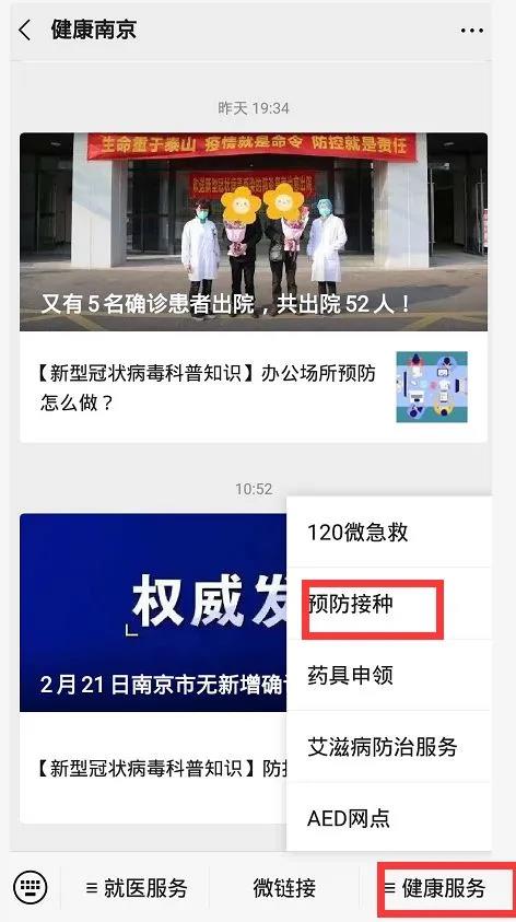 02您也可以打开“健康南京”微信公众号-“健康服务”-“预防接种”-“南京市预防接种门诊地图”,直接为您导航。