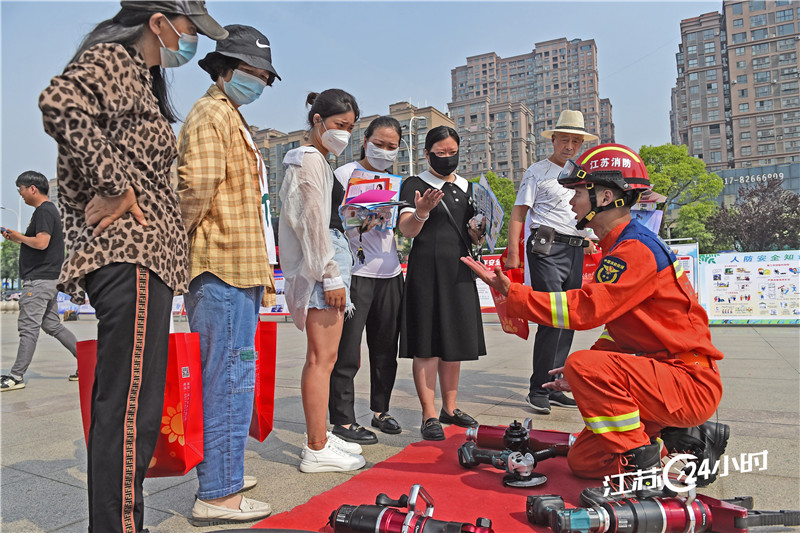 6月16日,涟水县开展安全主题宣传,消防、电力、公安等单位组织志愿者,向市民普及安全常识,增强市民的安全意识。