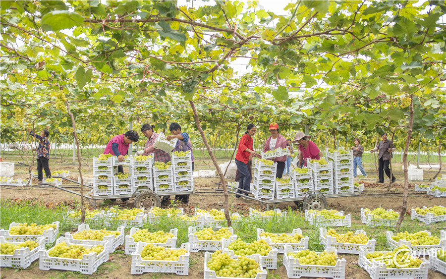 近年来,支口街道探楚社区采取“合作社+基地+农户”经营模式,建设高档连栋钢架塑料大棚16万平方米,引进种植阳光玫瑰、妮娜皇后等高端葡萄,发展壮大“甜蜜经济”产业。