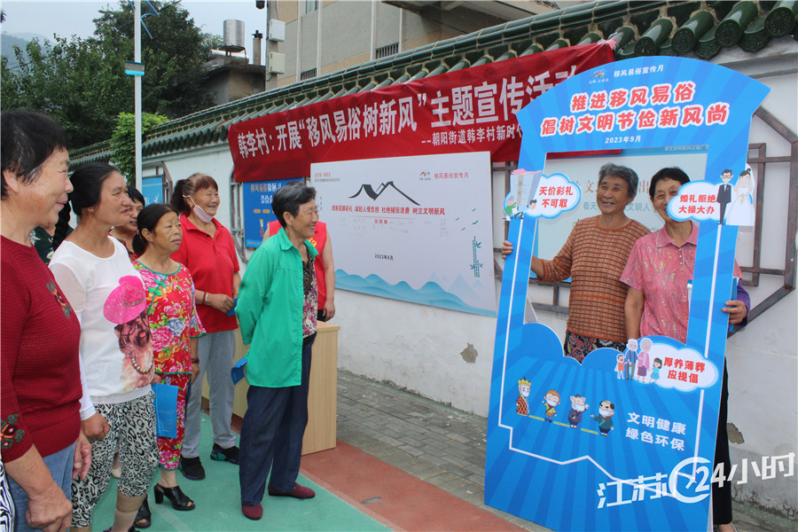 9月12日,连云港开发区朝阳街道韩李村新时代文明实践站在村文化广场开展“移风易俗树新风”活动,通过我承诺我签名、海报合拍、讲解政策等方式向群众宣传移风易俗知识,营造文明健康的良好社会氛围。