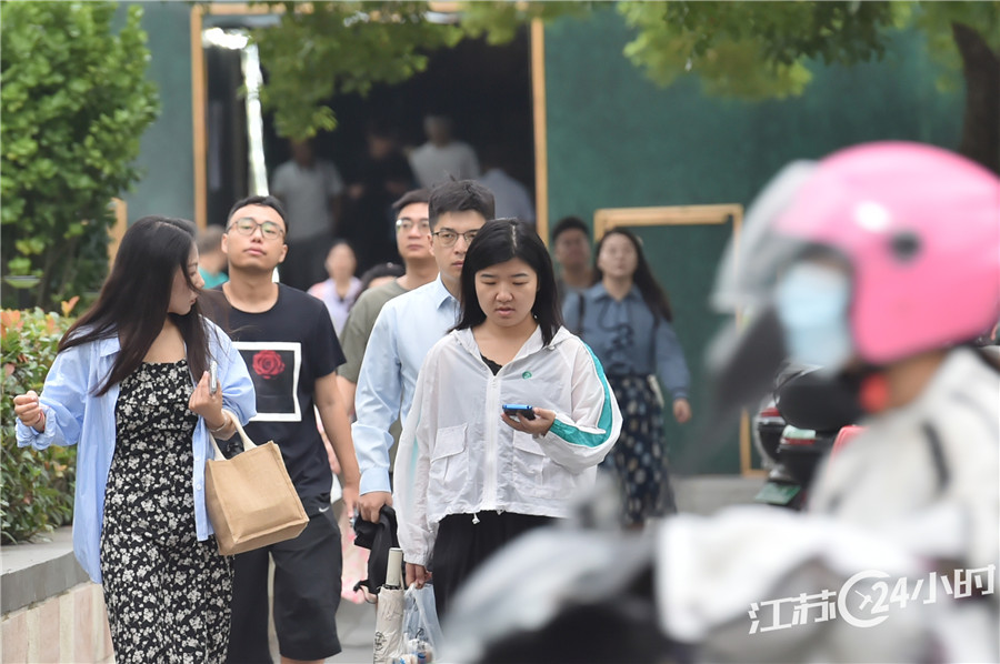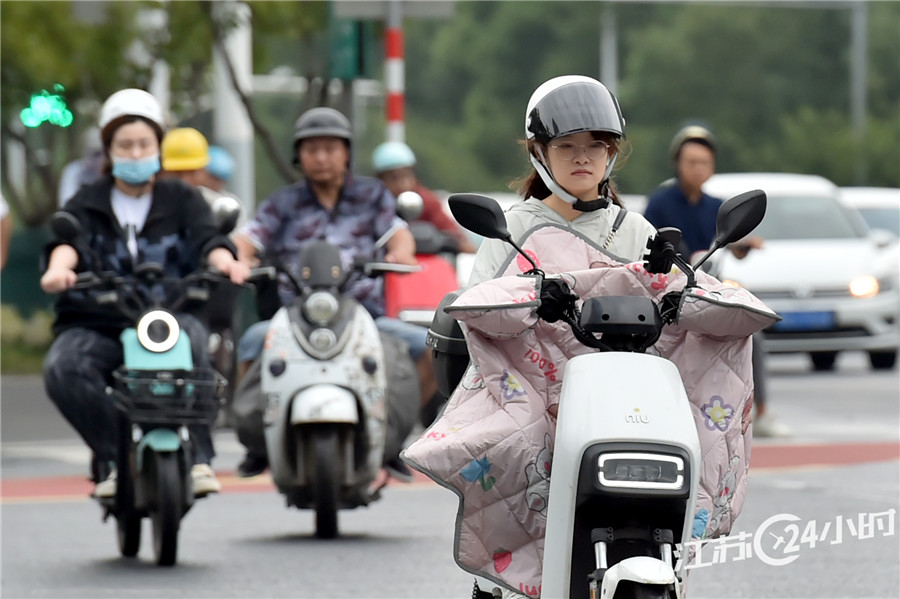 9月12日,南京迎来降温,不少市民适当添衣出行。