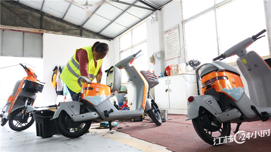 9月12日,连云港市城建控股集团鑫城公共设施服务有限公司维保车间,工人正在维修一批共享电单车。近年来,连云港市大力发展“两轮微公交”,依托公共自行车站点资源优势,拓展市场化共享出行运营服务,投放共享电单车4850辆,有效解决市民出行“最后一公里”问题。