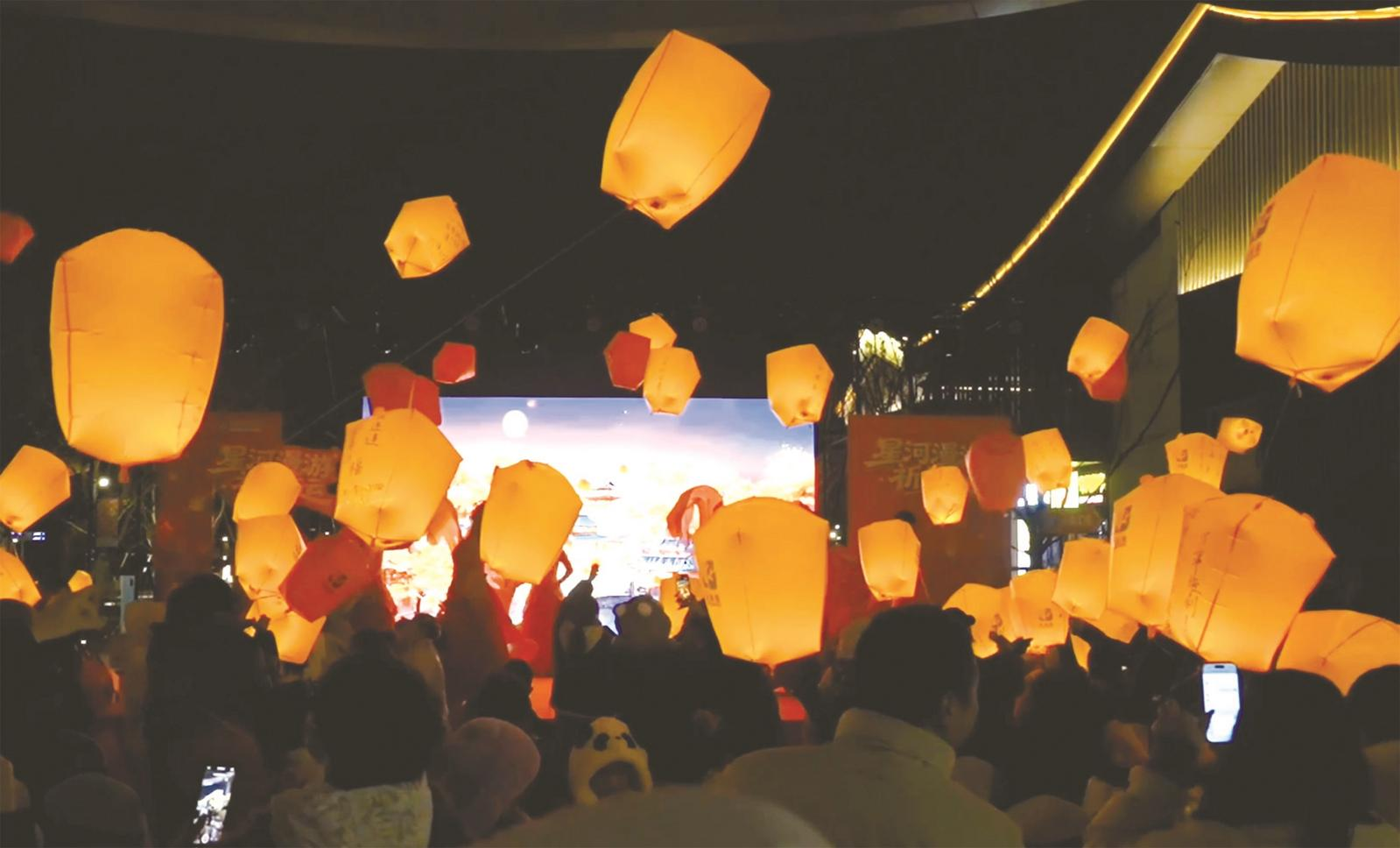“星河漫游祈好运”主题跨年活动在常青里文化旅游街区举行。人们领取素色天灯与笔墨,郑重写下“父母安康”“前路坦荡”等新年心愿。“这是我第一次放天灯,”市民李林玥表示,“写下‘平安喜乐’时,感觉把一整年的忙碌沉淀了下来。看着灯升上去,心里特别安静,也充满了希望。”点点天灯缓缓攀升,与街区舞台上的跨年演出交织,构成了告别旧岁、迎接新元的诗意场景。街区负责人表示,放天灯是传统祈福仪式的现代表达,旨在让大家在仪式感中寻得一处心安停泊的港湾。