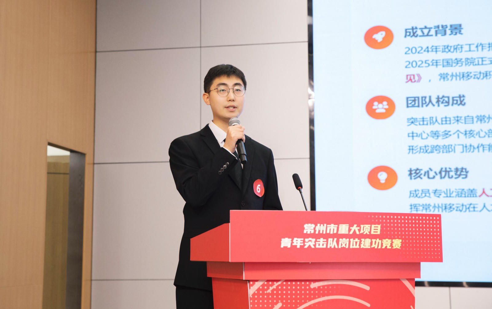 中国江苏网2月4日常州讯 近日,由共青团常州市委联合相关单位举办的重大项目青年突击队岗位建功竞赛路演展示活动圆满落幕。经过前期严格事迹评审,全市86支参评队伍中共有26支队伍入围路演环节,常州移动“人工智能+”产业赋能青年突击队凭借扎实的岗位建功成效与卓越的技术创新能力脱颖而出,成功斩获一等奖,充分彰显了移动青年在科技创新领域的硬核实力。