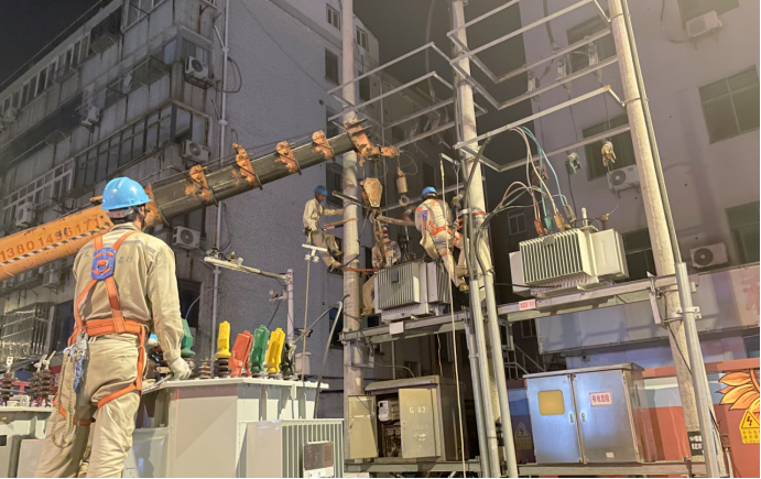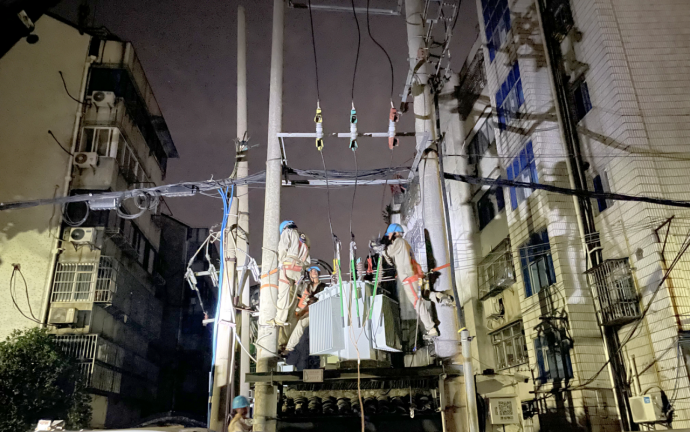 中国江苏网讯 6月10日凌晨零点,闷热寂静的户外没有一丝风。此刻,国网溧阳市供电公司工作人员正在对城区平陵菜场、北大街、煤建路三个地点的三台变压器争分夺秒地进行着增容改造工作,一场悄无声息的零点“大作战”就此拉开帷幕。