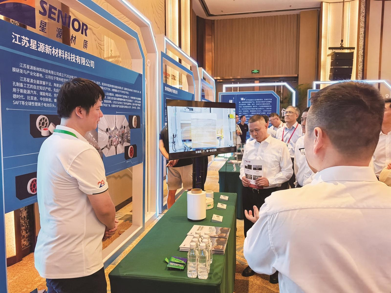 线下展区精彩纷呈,多家企业带来前沿产品与应用方案。中车戚墅堰所将其60余年齿轮传动研发制造经验融入风电装备全生命周期,产品广泛应用于国内25个省的178个风场,目前产品最长服役年限已超过13年,至今保持良好运行状态。江苏星源推出的锂电池隔膜厚度仅相当于A4纸的三十分之一,为当前行业最薄,兼具高机械强度、优良透气性和低阻抗等特性,适用于半固态电池。博瑞电力展出储能电池舱模型、储能变流器模型和变流升压一体舱模型。“我们利用构网型技术基于储能系统打造理想同步电源,率先成功研制构网型系列装备并实现批量应用,投运工程均经过现场人工短路等严苛试验,验证了理想同步电源特性。”