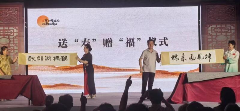在温馨的乐曲中,志愿者们为到场的老人代表们送上现场写的“福”字与“寿”字,将最诚挚的“福如东海,寿比南山”祝福送给每一位长者。