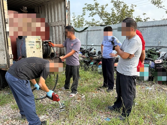 中国江苏网讯 9月12日15时许,根据前期掌握的线索,常州市公安机动侦察大队在经开区潞城街道兴东路某停车场内,发现一辆长期停靠的白色厢式货车形迹可疑。经现场勘察,该车辆实为非法改装加油车。机动侦察大队随即联合横山桥派出所开展执法行动。