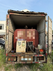 民警打开车厢后发现,车内非法安装了油桶、油枪、计量器具等全套加油设备。执法人员当场依法查扣车内油品。后经检测,确认该油品质量不合格。