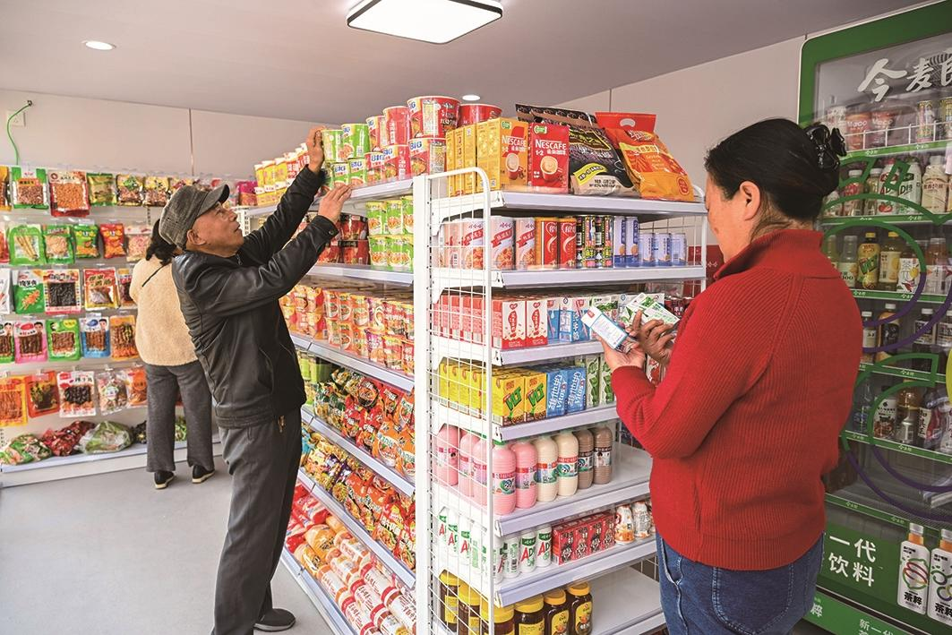 居民张玉娟对驿站内的“戚彩优选”便民超市赞不绝口。作为社区志愿者,她通过参与巡逻、组织活动积累积分,可直接在超市兑换米、油等生活用品。“物业还承诺,高龄独居或腿脚不便的老人,只需一个电话就能送货上门,这对我们老年人来说太友好了。”