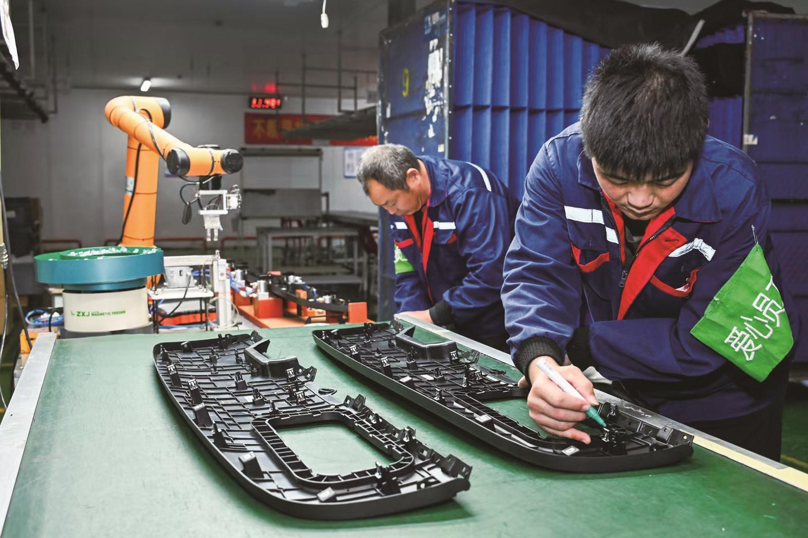 绿色制造,更体现在对资源的最大化利用。在煜明电子注塑车间,生产运营总经理沈为飞展示了塑料周转箱:“外观虽然不显眼,但它的原料是我们生产过程中的废料。我们通过自主设计模具,将废料转化成周转箱,实现资源的闭环利用。”