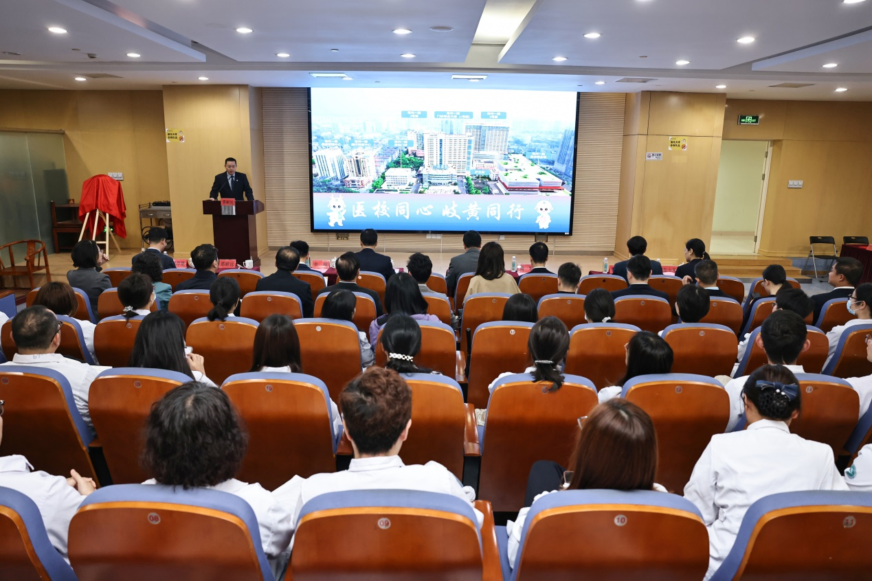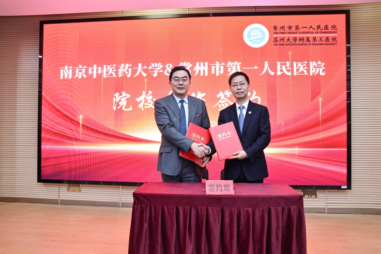 华飞致辞。他简要介绍了常州一院的基本情况以及校院双方近年来优势互补、共促发展取得的成效。他表示,双方将以共建中西医结合临床医学院为核心,深度融合各自优势,进一步传承孟河医派精髓,推动中医药理论与临床实践融合,培育复合型医学人才;拓展人工智能与信息技术应用,共建智慧医疗平台,开展辨证辅助、方案优化、数据挖掘等研究,实现资源共享与成果转化。常州一院将充分发挥临床资源优势,为学院提供优质高效的教学实践基地,助力提升学院教学质量;同时依托学院的科研底蕴与人才优势,聚焦临床诊疗中的关键难题,协同攻关、转化成果,让孟河医派的济世初心与现代医疗、智慧技术相融共生,让群众在家门口就能享受到更优质、更具特色的中西医结合健康服务。