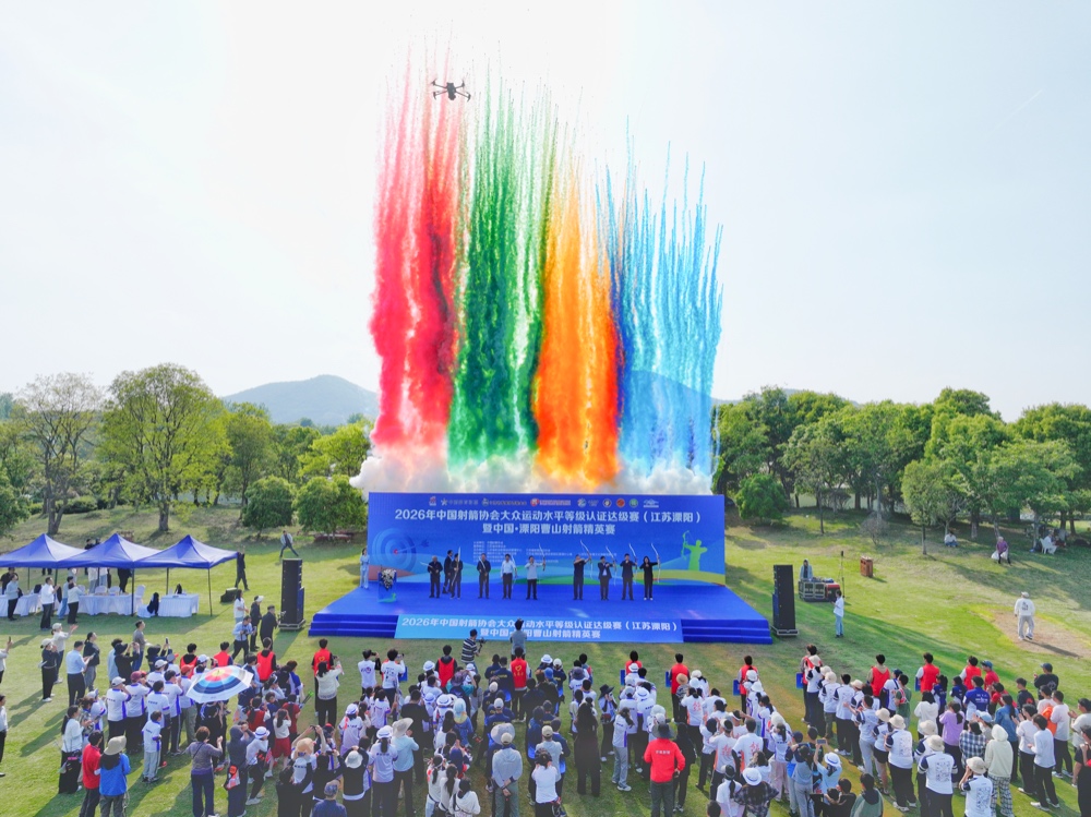 中国江苏网4月26日常州讯 暮春四月,曹山叠翠。4月25日,2026年中国射箭协会大众运动水平等级认证达级赛(江苏溧阳)暨中国・溧阳曹山射箭精英赛在曹山旅游度假区开赛。作为溧阳连续四年打造的国家级射箭品牌赛事,本届赛事以专业达级、全民参与、体旅融合为核心,汇聚全国弓友同台竞技,尽显射艺精髓与当代体育风尚。