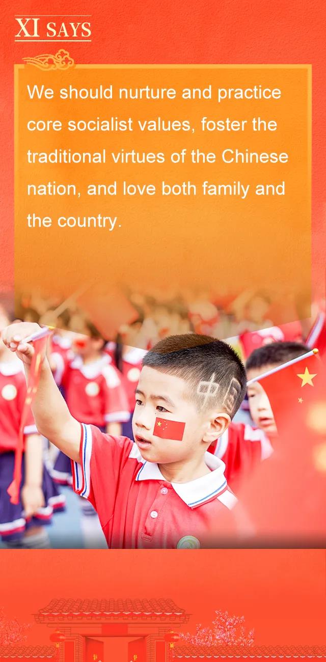 我们要积极培育和践行社会主义核心价值观,弘扬中华民族传统美德,把爱家和爱国统一起来。