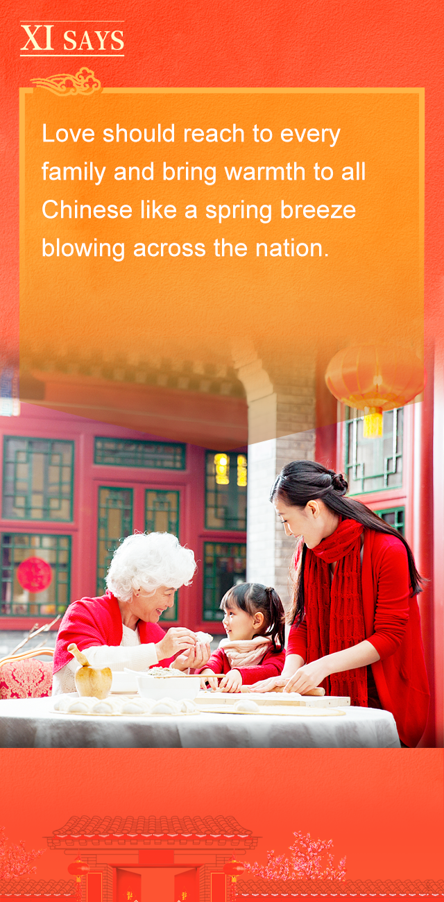我们要让真情大义像春风一样吹遍神州大地,吹进千家万户,给每一个中华儿女带来温暖。