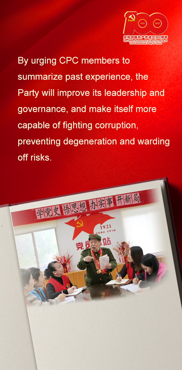 要教育引导全党通过总结历史经验教训,着眼于解决党的建设的现实问题,不断提高党的领导水平和执政水平、增强拒腐防变和抵御风险能力。