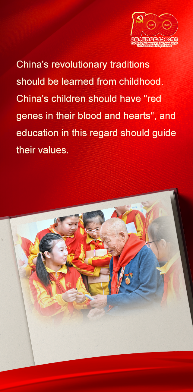 革命传统教育要从娃娃抓起,既注重知识灌输,又加强情感培育,使红色基因渗进血液、浸入心扉,引导广大青少年树立正确的世界观、人生观、价值观。