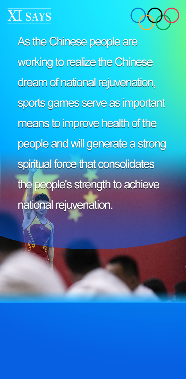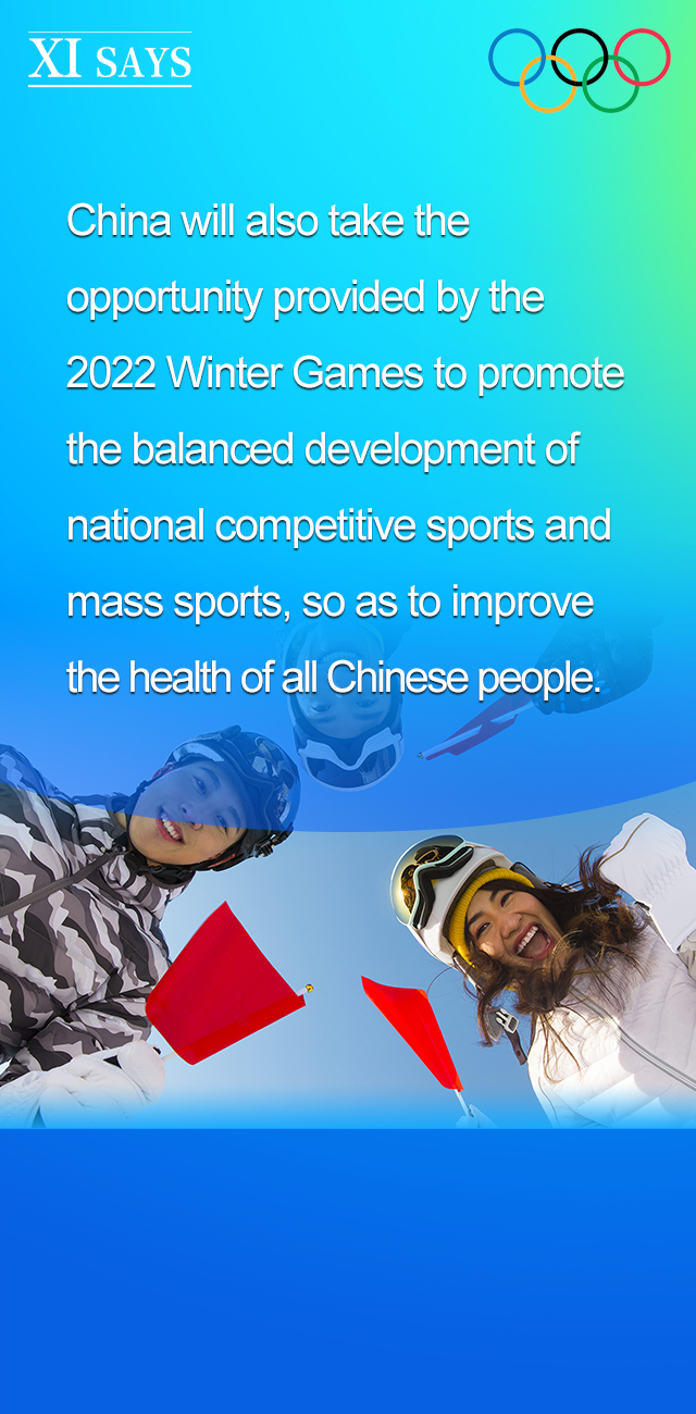 我们将以北京冬奥会为契机,推动群众体育和竞技体育全面平衡发展,推进全民健身事业,不断提升人民健康水平。