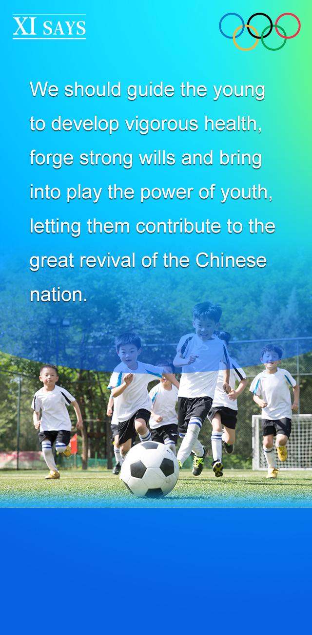 引导广大青少年积极参与体育健身运动,强健体魄、砥砺意志,凝聚和焕发青春力量,为中华民族伟大复兴作出应有贡献。