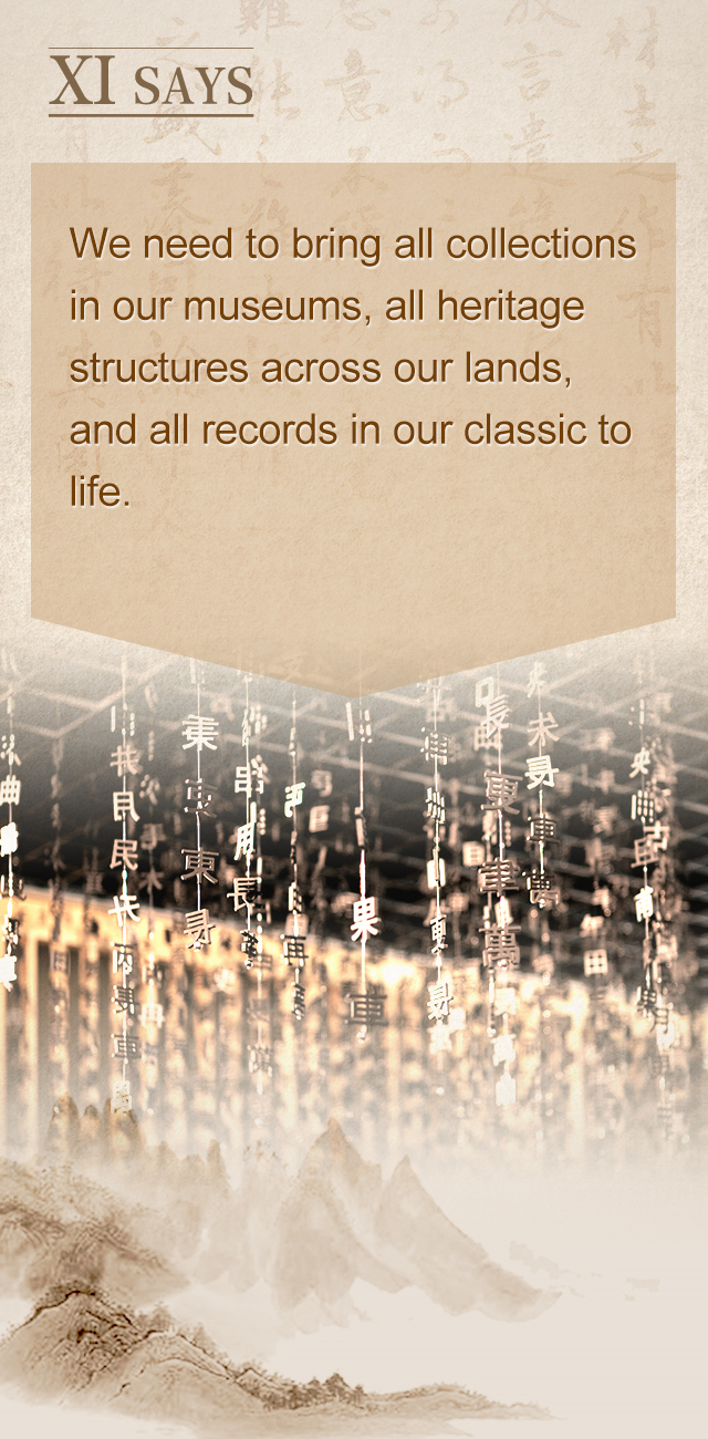让收藏在博物馆里的文物、陈列在广阔大地上的遗产、书写在古籍里的文字都活起来。