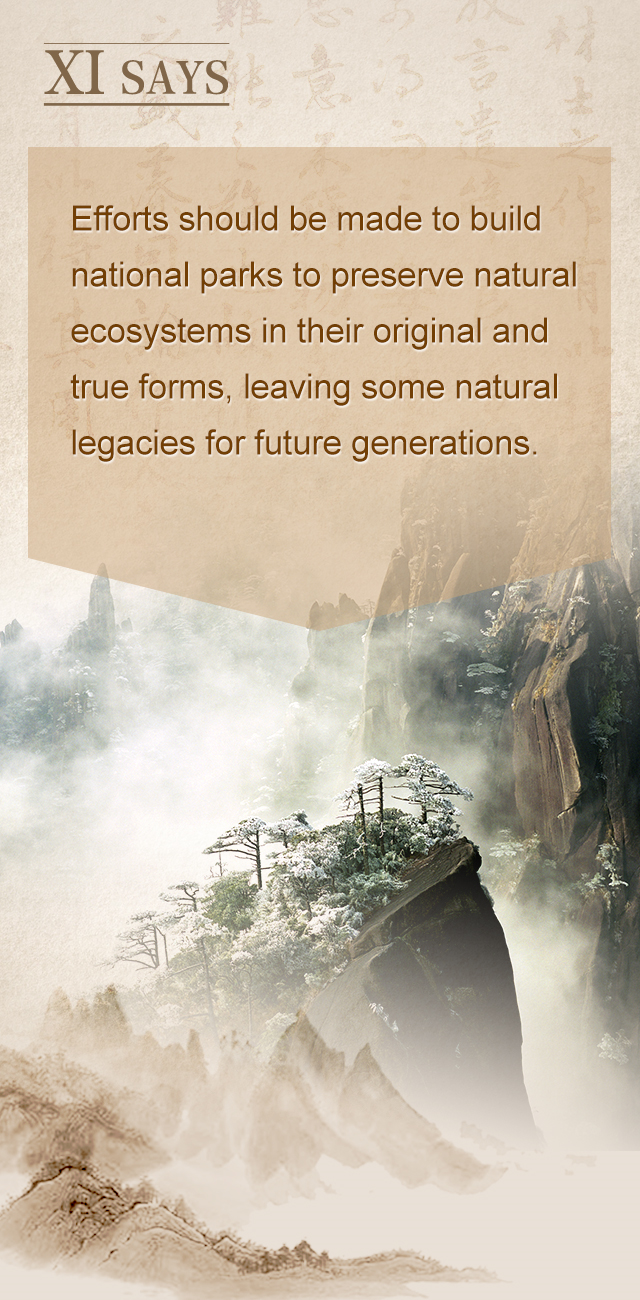 要着力建设国家公园,保护自然生态系统的原真性和完整性,给子孙后代留下一些自然遗产。