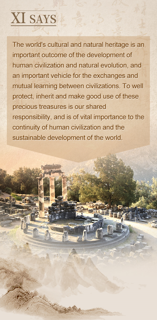 世界文化和自然遗产是人类文明发展和自然演进的重要成果,也是促进不同文明交流互鉴的重要载体。保护好、传承好、利用好这些宝贵财富,是我们的共同责任,是人类文明赓续和世界可持续发展的必然要求。