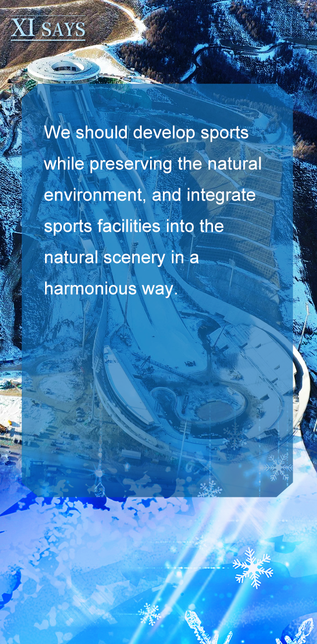 把发展体育事业同促进生态文明建设结合起来,让体育设施同自然景观和谐相融。