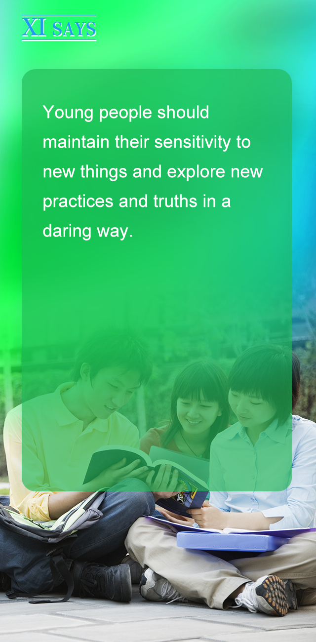 青年要保持对新事物的敏锐,勇于开拓实践,勇于探索真理。