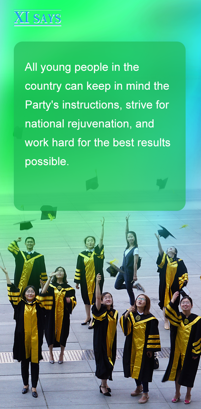 希望全国广大青年牢记党的教诲,立志民族复兴,不负韶华,不负时代,不负人民,在青春的赛道上奋力奔跑,争取跑出当代青年的最好成绩!