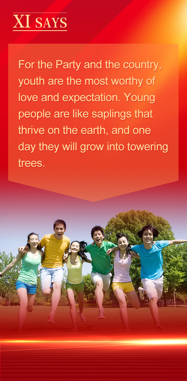 青年之于党和国家而言,最值得爱护、最值得期待。青年犹如大地上茁壮成长的小树,总有一天会长成参天大树,撑起一片天。