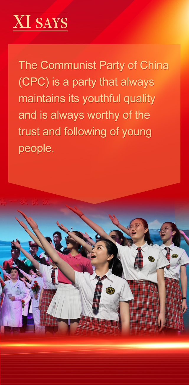 中国共产党是始终保持青春特质的党,是永远值得青年人信赖和追随的党。
