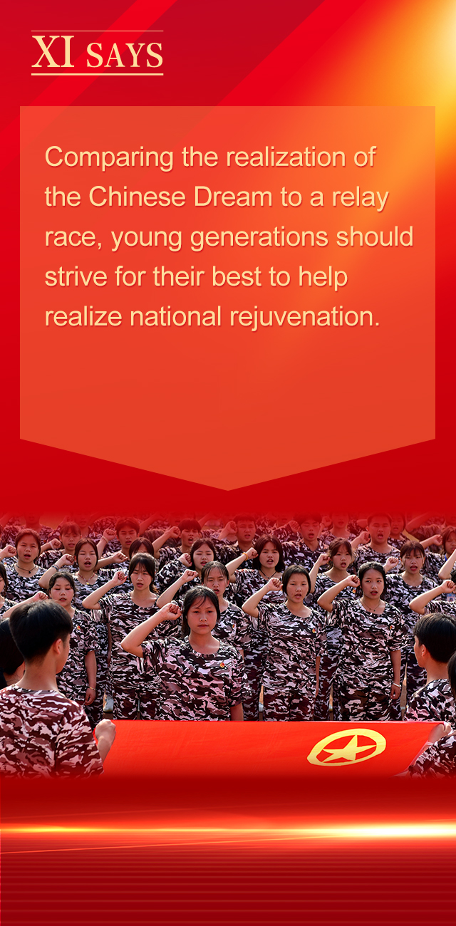 实现中国梦是一场历史接力赛,当代青年要在实现民族复兴的赛道上奋勇争先。