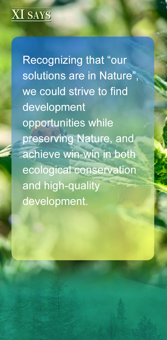 我们要以自然之道,养万物之生,从保护自然中寻找发展机遇,实现生态环境保护和经济高质量发展双赢。