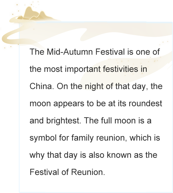 中秋节是中国最重要的传统节日之一。中秋夜的月亮是一年中最圆、最亮的,亦称满月,象征着家人的团聚,因此中秋节也被人们视为团圆的节日。