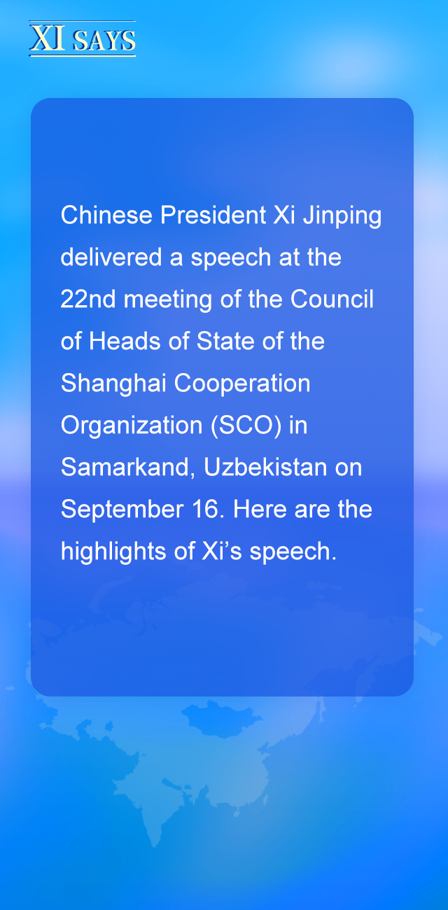 9月16日,国家主席习近平出席在撒马尔罕举行的上海合作组织成员国元首理事会第二十二次会议并发表重要讲话。一起来学习本次重要讲话要点金句。