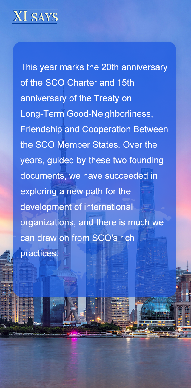今年适逢上海合作组织宪章签署20周年,成员国长期睦邻友好合作条约签署15周年。这些年来,本组织成员国以这两份纲领性文件为思想基石和行动指南,逐步成功探索出一条新型国际组织成长壮大之路,积累形成了一系列富有启示意义的重要成功经验。