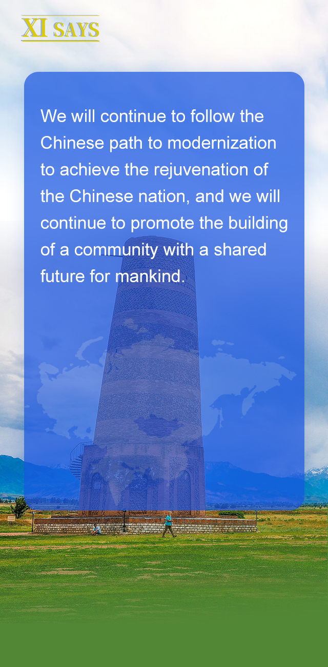 我们将坚持以中国式现代化实现中华民族伟大复兴,继续积极推动构建人类命运共同体。