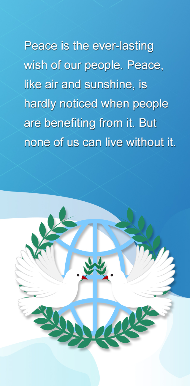 和平是人民的永恒期望。和平犹如空气和阳光,受益而不觉,失之则难存。