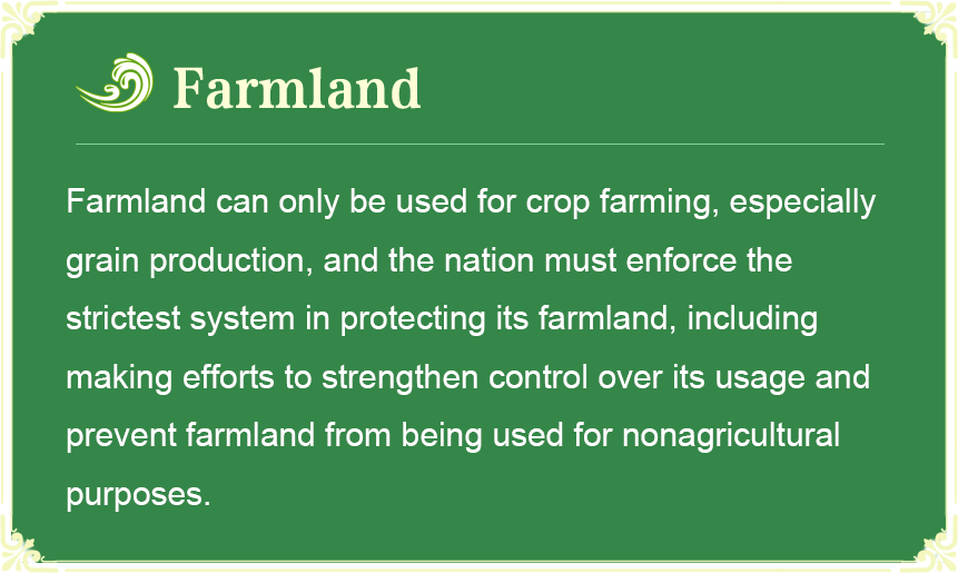 农田就是农田,只能用来发展种植业特别是粮食生产,要落实最严格的耕地保护制度,加强用途管制,规范占补平衡,强化土地流转用途监管,推进撂荒地利用,坚决遏制耕地“非农化”、基本农田“非粮化”。