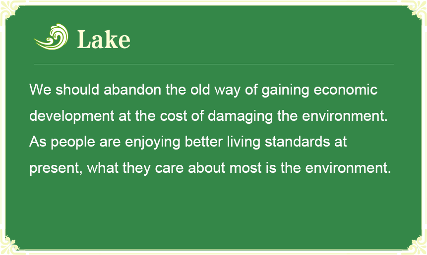 我们要避免走先污染再治理的老路,一定要摒弃过去那种以生态环境为代价换取一时经济发展的做法。从当前看,老百姓现在吃饱穿暖了,最关心的就是环境。