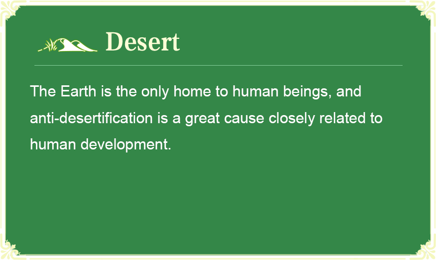 人类只有一个地球家园。荒漠化防治是关系人类永续发展的伟大事业。