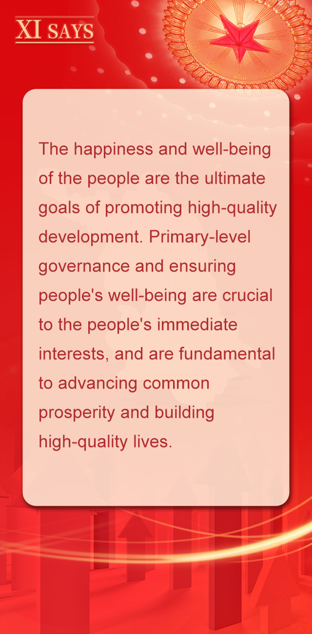 人民幸福安康是推动高质量发展的最终目的。基层治理和民生保障事关人民群众切身利益,是促进共同富裕、打造高品质生活的基础性工程。