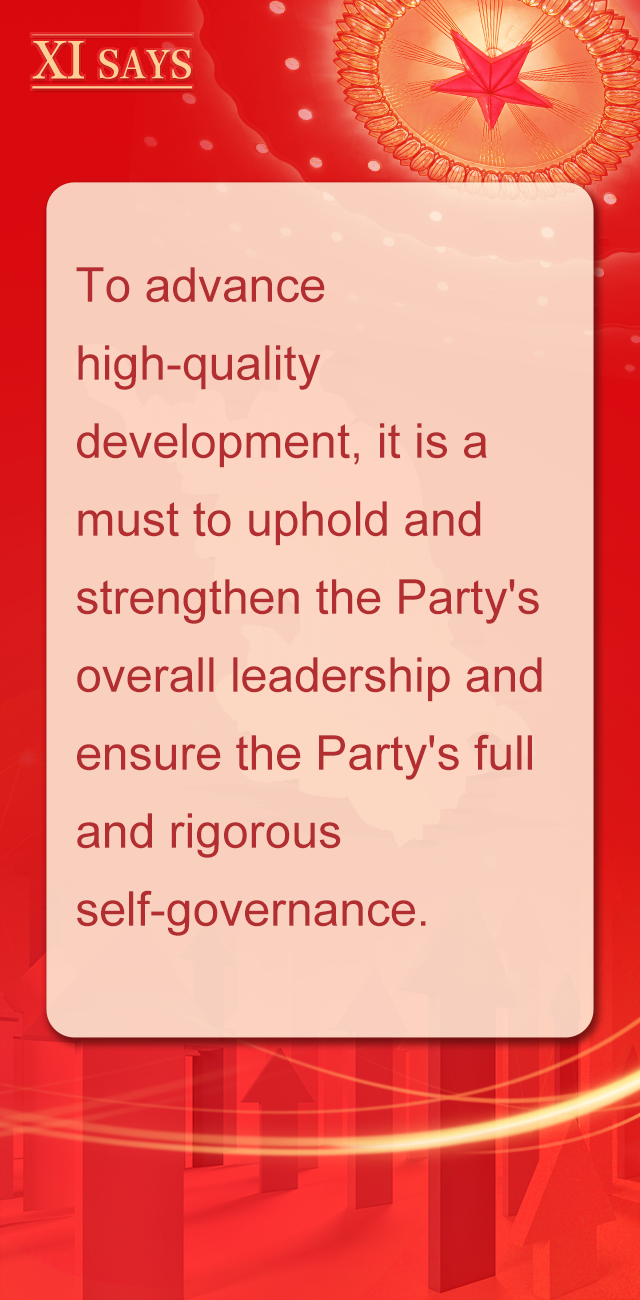 推动高质量发展,必须坚持和加强党的全面领导、坚定不移全面从严治党。